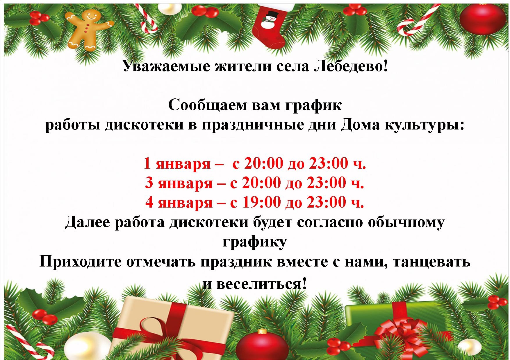 Уважаемые жители села Лебедево Сообщаем об изменениях в праздничные дни